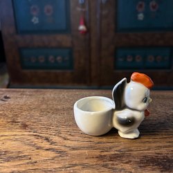 Äggkopp i porslin med en söt kyckling som tittar ut ur sitt äggskal. Perfekt i påsk!