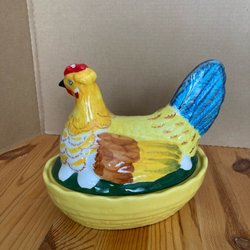 Från början av 1900 talet. Lite krackeleringar på insidan av underdelen. Annars i fint skick. Ca 25 cm lång och ca 17 cm hög . Frakt lite högre för att jag ska kunna packa ordentligt