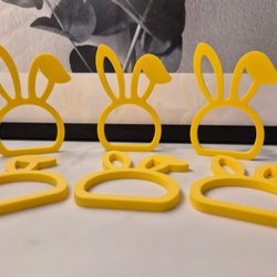 Höna och en kyckling. De är tillverkade I PLA av mig i min hemmastudio och har en design med vertikala linjer i japandi stil. Hönan har en kam och slör, medan kycklingen är enklare i sin utformning. Figurerna är i en naturlig träfärg.