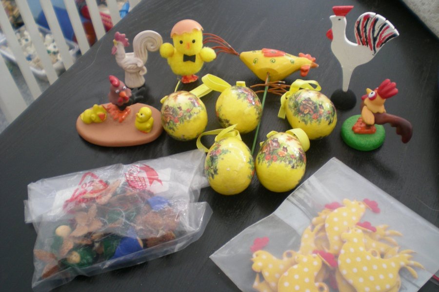 Påskpynt: Kycklingar, tuppar och ägg