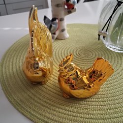 Tuppar o hönor för påskdekoration. Rosa tuppen är 34 cm hög. Från djur o rökfritt hem.