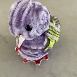 Ett påskägg i papp med en liten kyckling inuti. Ägget är dekorerat med en gul kyckling i chenille, färgglada piprensare och ett grönt band. Ägget står på en turkos platta i papp