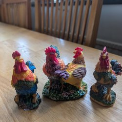 Påsk : En grupp hönor/tuppar , ca 10-12 cm höga . Kolla gärna mina andra annonser , sampackar 7 dagar . OBS!!! Använder mig av traderas vinnarmail , där finns alla uppgifter vid köp . OM Du budar hem fler objekt invänta mail om nya fraktpriset