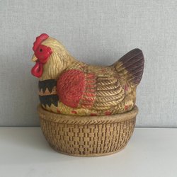 1 st. ägghöna, färgglad, från SMF, Schramberger Majolika Fabrik, Tyskland, Schramberger Handgemalt, 1231, 42, äggskålen märkt 4774, höjd 17,5 cm, längd 21 cm, bredd 15,5 cm, titta noga på bilderna innan bud