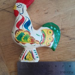 Påsktupp i rött, grönt och svart. Handmålad med detaljerade mönster. Passar som prydnadsföremål.