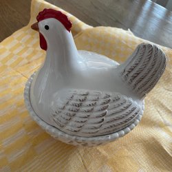 Fin godisgömma i härlig påskgul färg. Bruksslitage, naggar på undersidan av botten, se sista bilden.