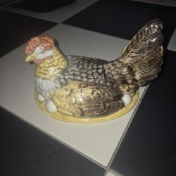 Denna charmiga keramikhöna är en dekorativ detalj för hemmet. Hönan ruvar på ägg, vilket ger en lantlig känsla. Perfekt för att förvara småsaker eller som en prydnad.