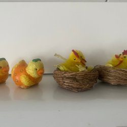 påskpynt, påsk, kycklingar, påskkycklingar, påskdekoration, inredning, porslin, keramik, gul, påskris, vår, prydnad.