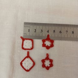 De är virkade i bomullsgarn och är ca 3,5 cm.