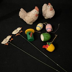 Diverse påskpynt i trä.