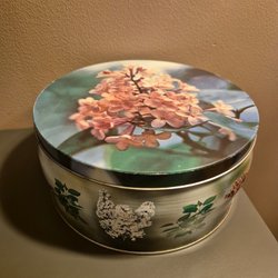 Ett handmålat påskägg. Ägget är i en lila nyans med vita blommor som motiv. Ägget kan öppnas och användas för förvaring.