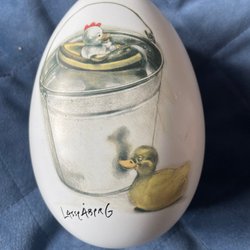 Ett påskägg i plåt gjort av Lasse Åberg . Perfekt att ge till en samlare