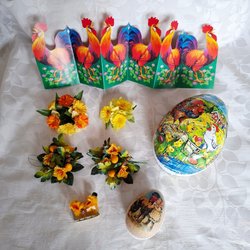 En låda påskpynt