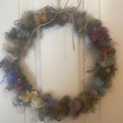 Jag har gjort en krans med fårull som passar fint nu i vår , påsk och i sommar.