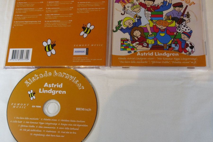 CD med Astrid Lindgrens älskade barnvisor. Innehåller klassiker som "Här kommer Pippi Långstrump", "Du käre lille snickerbo", "Sjörövar-Fabbe" och "Pilutta-visan". En perfekt samling för barnen!