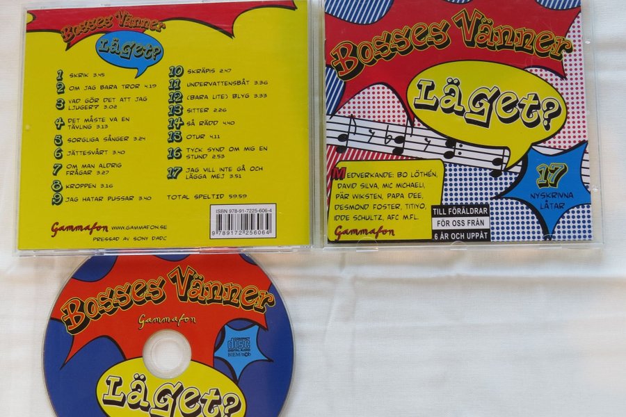 CD-skiva med Bosses Vänner - Läget?. Innehåller 17 nyskrivna låtar. Lämplig för barn från 6 år och uppåt.