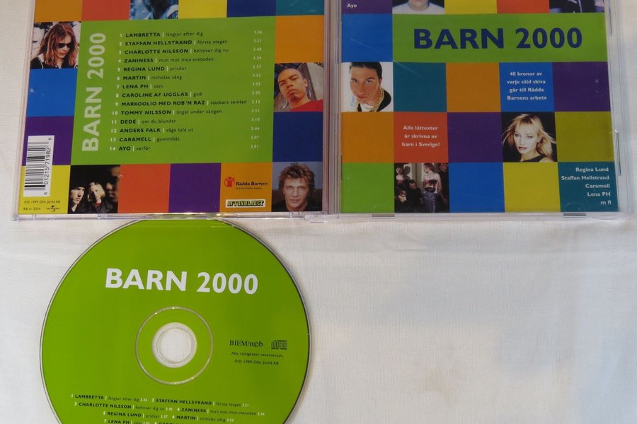 CD-skiva med samlingen Barn 2000. Innehåller låtar med Lambretta, Staffan Hellstrand, Charlotte Nilsson, Zaniness, Regina Lund, Martin, Lena PH, Caroline af Ugglas, Markoolio med Rob'N Raz, Tommy Nilsson, Dede, Anders Falk, Caramell och Ayo.