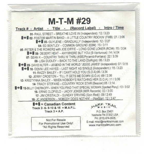 Samling av diverse artister och låtar, inklusive Paul Street, Foster Martin Band och Guylene.