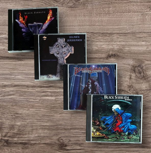 Sælger en samling af Black Sabbath CD'er. Indeholder titlerne: Cross Purposes, Headless Cross, Dehumanizer og Forbidden. Perfekt til Black Sabbath-fans og samlere!