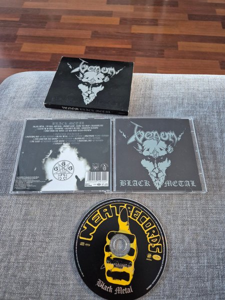 CD-utgåva av Venom - Black Metal. Innehåller bonusspår. Tillverkad i England.