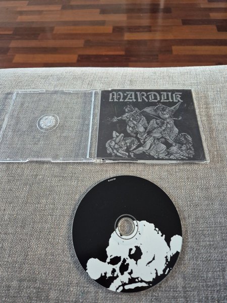 CD-skiva med Marduk, ". Skivan är svart med vit grafik och texten "BLOOD 020". Konvolutet är svartvitt med bandets logotyp och en detaljerad illustration.