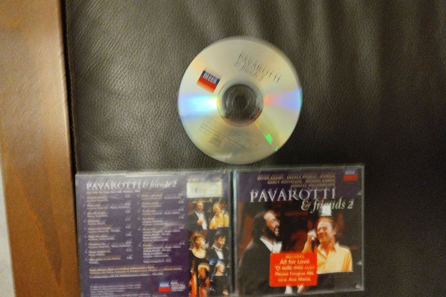 CD skivan Pavarotti & Friends 2. Inkluderar All for Love, O sole mio duet, Please Forgive Me, New Ave Maria. Med Bryan Adams, Andrea Bocelli, Giorgia, Nancy Gustafson, Michael Kamen, Andreas Vollenweider.