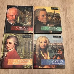 Samling av klassiska musik-CDs med verk av Debussy, Händel, Bach, Haydn, Tjajkovskij och Chopin.