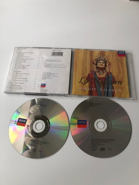 Dubbel-CD med Birgit Nilsson, "La Nilsson". Innehåller 16 spår fördelade på två skivor med en total speltid på 146:24. Utgiven av Decca.
