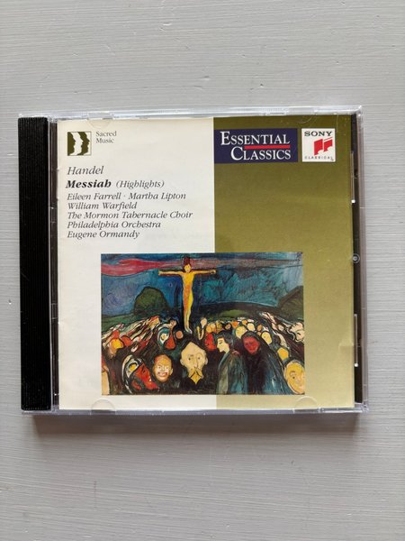 CD med "Messiah (Highlights)" av Handel. Medverkande är Eileen Farrell, Martha Lipton, William Warfield, The Mormon Tabernacle Choir, Philadelphia Orchestra och Eugene Ormandy. Utgiven av Sony Classical som en del av "Essential Classics"-serien.