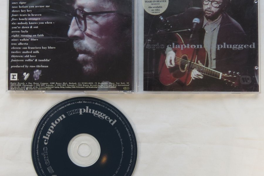 CD-skiva med Eric Clapton - Unplugged. Innehåller akustiska versioner av Layla och Tears in Heaven.