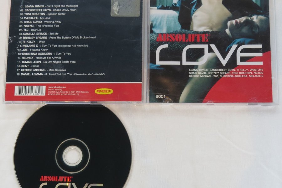 CD-skivan Absolute Love från 2001 med en samling av populära kärlekssånger från artister som LeAnn Rimes, Backstreet Boys, Britney Spears och många fler. Perfekt för alla som älskar romantisk musik.