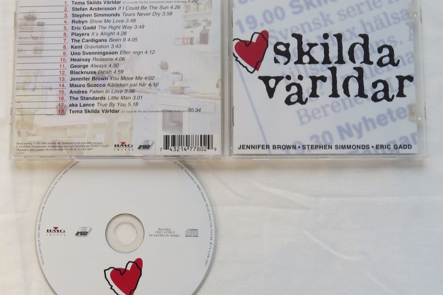 CD-skiva med musiken från TV-serien Skilda Världar. Innehåller låtar av Stefan Andersson, Robyn, The Cardigans, Kent och många fler.
