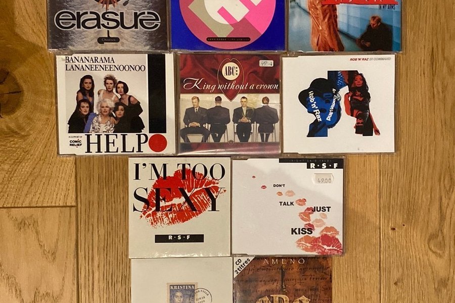 Samling av CD-singlar med artister som Erasure, Bananarama, ABC, Rob 'n' Raz, Right Said Fred och Era.