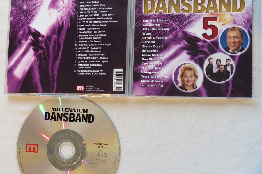 Millennium Dansband 5 med 20 låtar. Artister inkluderar Lotta Engberg, Wizex, Göran Lindberg, Candela, Stefan Borsch, Kikki Danielsson, Streaplers, Christer Sjögren, Lasse Stefanz, Dan Stråhed, Ann-Cathrine Wiklander, Curt Haagers, Nick Borgen, Arvingarna, Vikingarna, Towe Widerbergs, Christers, Lisbet Jagedal, Marie Arturén.