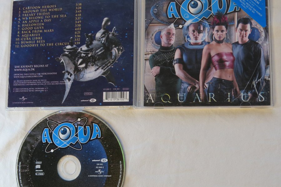 Aqua - Aquarius CD. Innehåller låtarna Cartoon Heroes, Around the World, Freaky Friday, We Belong to the Sea, An Apple a Day, Halloween, Good Guys, Back From Mars, Aquarius, Cuba Libre, Bumble Bees och Goodbye to the Circus.