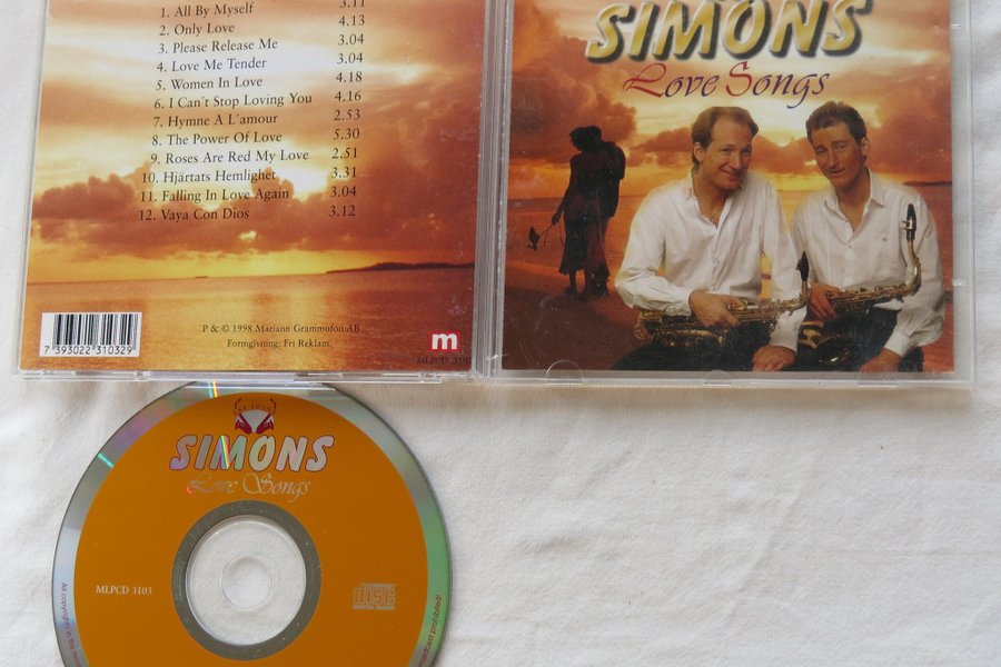 CD-album med Simons, "Love Songs", släppt 1998 av Mariann Grammofon AB. Innehåller 12 spår, bland annat "All By Myself", "Only Love" och "The Power Of Love". Katalognummer MLPCD 3103.
