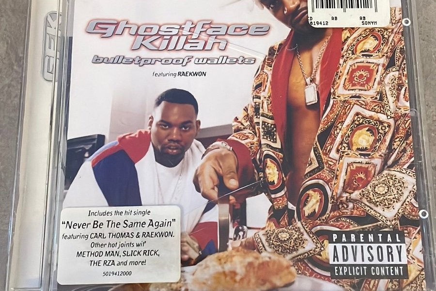 CD-albumet "Bulletproof Wallets" av Ghostface Killah, med Raekwon. Innehåller singeln "Never Be The Same Again" med Carl Thomas & Raekwon, samt låtar med Method Man, Slick Rick och The RZA. Föräldrarådgivning: Explicit innehåll.