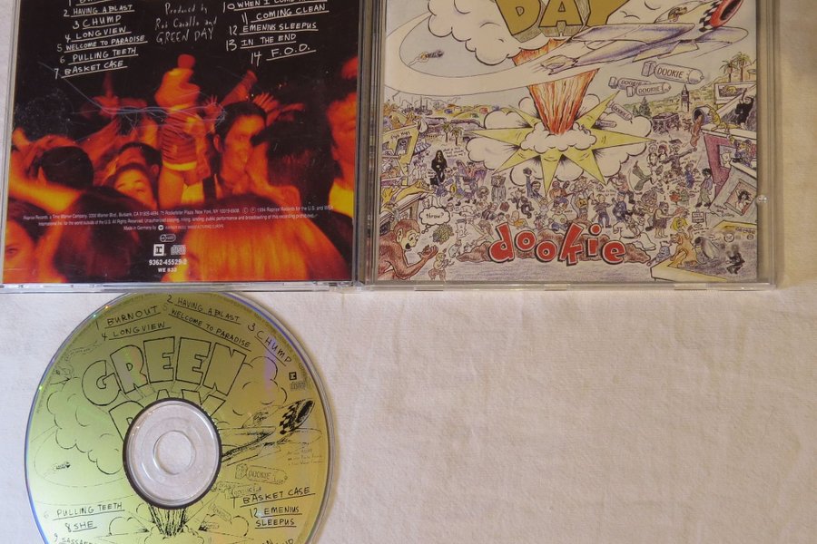 Green Day - Dookie CD. Innehåller låtarna: Burnout, Having A Blast, Chump, Longview, Welcome To Paradise, Pulling Teeth, Basket Case, She, Sassafras Roots, When I Come Around, Coming Clean, Emenius Sleepus, In The End, F.O.D.