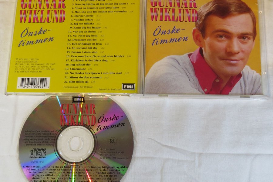 Inehåller 2st av samma skiva. CD-skiva med Gunnar Wiklund - Önsketimmen. Innehåller 22 låtar. Utgiven 1996 av EMI Svenska AB.