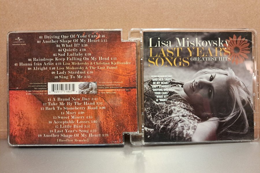 CD-skiva med Lisa Miskovsky - Last Year's Songs Greatest Hits. Innehåller låtar som "Driving One Of Your Cars", "Another Shape Of My Heart" och "Lady Stardust".