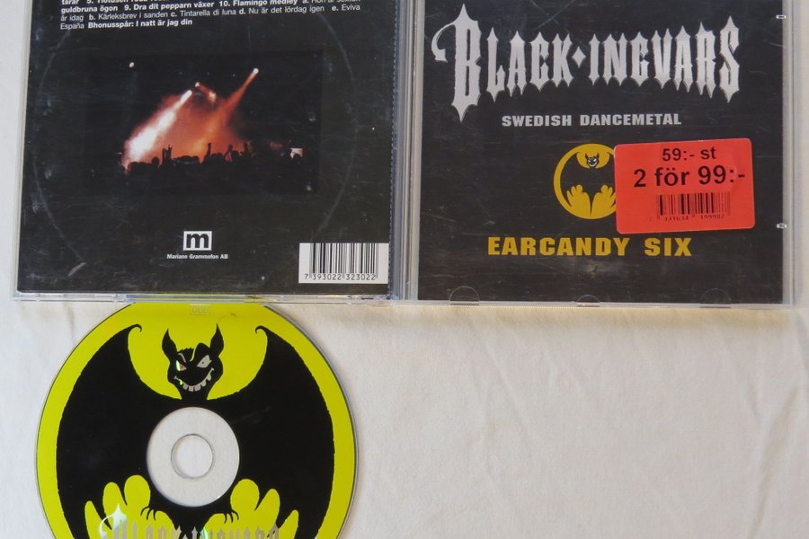 CD-album med Black-Ingvars, "Earcandy Six". Innehåller 10 låtar plus ett bonusspår. Låtlista: 1. De sista ljuva åren, 2. Inget stoppar oss nu, 3. Två mörka ögon, 4. Gråt inga tårar, 5. Tiotusen röda rosor, 6. Mitt eget blue Hawaii, 7. Eloise, 8. Leende guldbruna ögon, 9. Dra dit pepparn växer, 10. Flamingo medley (Hon är sexton år idag, Kärleksbrev i sanden, Tintarella di luna, Nu är det lördag igen, Eviva España). Bonusspår: I natt är jag din. Utgiven av Mariann Grammofon AB. Katalognummer: MLPCD 3230. EAN: 7393022323022.