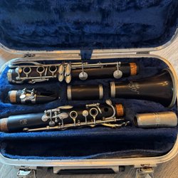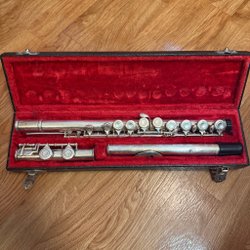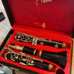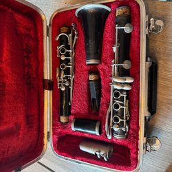 Har ej spelat denna själv då jag ej har koll på dessa instrument så det är upp till köparen ifall den verkar komplett eller om den går att använda reservdelar. Alternativt som inredningsdetalj. Lådan ok skick.