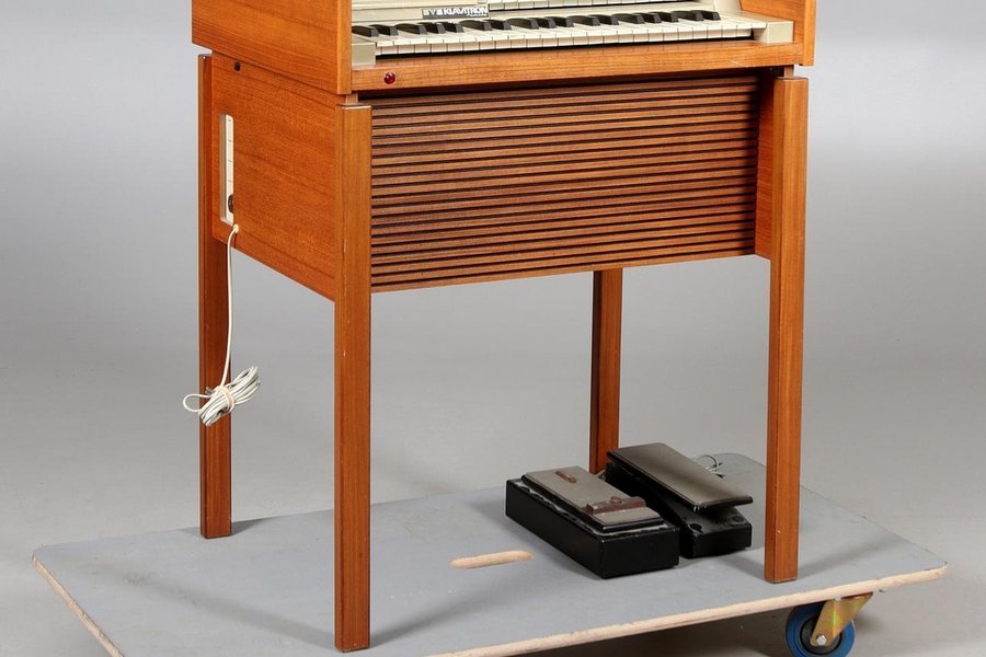 Elorgel av märket Bergman Orgel Med Radiorör Den har dubbla klaviaturer och pedaler.