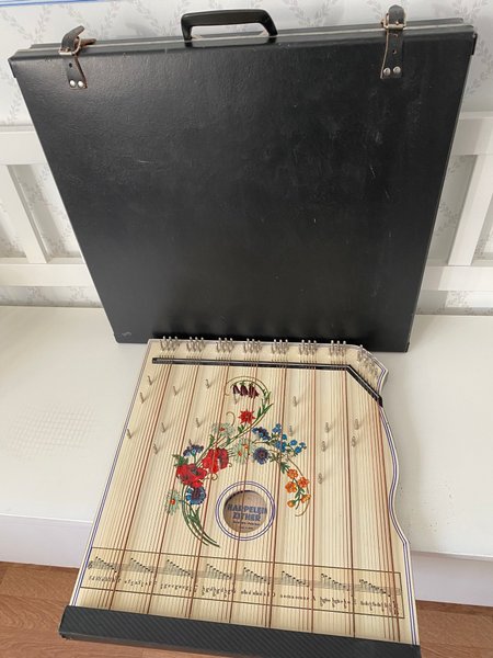 Med väska, säljer nu cittran den har bara stått i en garderob, då det aldrig blev av att jag lärde mej spela.Den verkar välvårdad så långt jag kan se.
