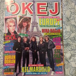 Tidningen Okej från 1986 med artiklar om Europe, Nina Hagen, Miami Vice, Duran Duran, Kee Marcello, Tom Cruise m.m.