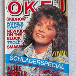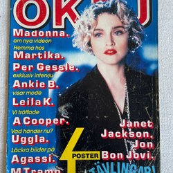 Tidningen OKEJ Nr 18 från 1990 med Madonna på omslaget. Innehåller artiklar om bland annat Madonna, Electric Boys, Bruce Dickinson, New Kids On The Block, Monsters Of Rock, Sofia Källgren och Rockdrottningar. Posters saknas.