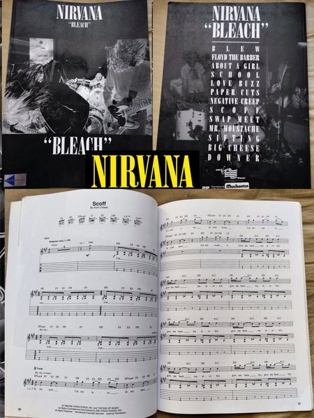 Notbok för "Bleach" av Nirvana. Innehåller låtar som "Blew", "About a Girl" och "Scoff".
