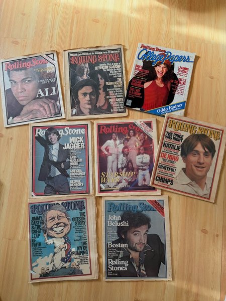 Ett parti med Rolling Stone tidningar med olika artister och kändisar på omslaget