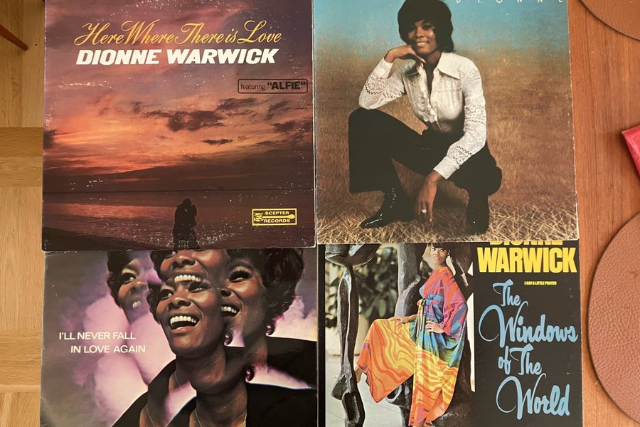 Fyra vinylskivor av Dionne Warwick: * Here Where There is Love * I'll Never Fall In Love Again * The Windows of The World * Dionne