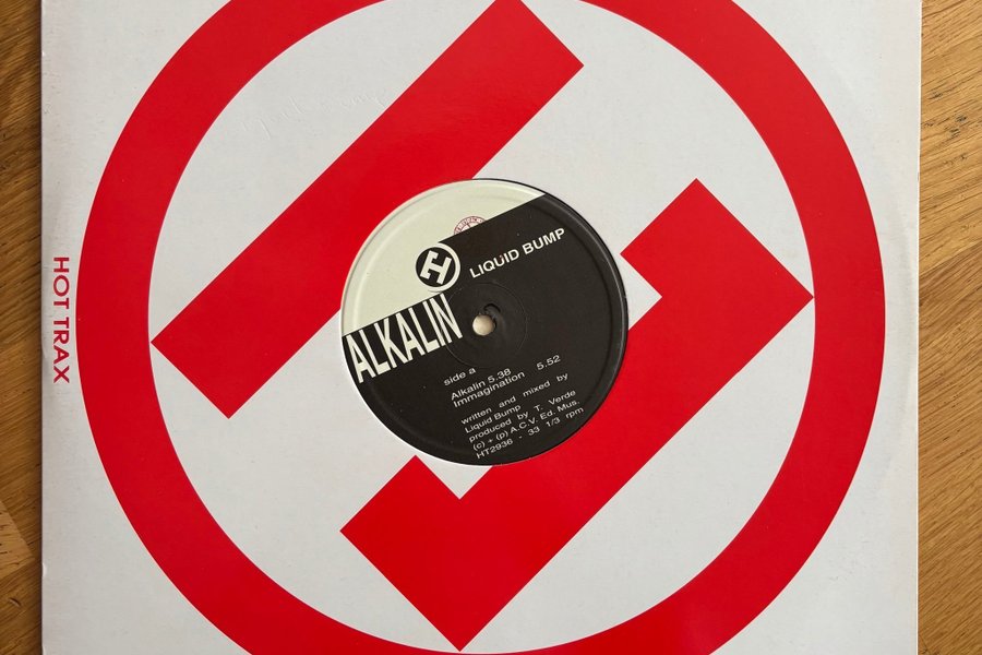 Alkalin - Liquid Bump vinylskiva. Sida A: Alkalin 5.38, Immagination 5.52. Skriven och mixad av Liquid Bump. Producerad av T. Verde. HT2936 - 33 1/3 rpm.